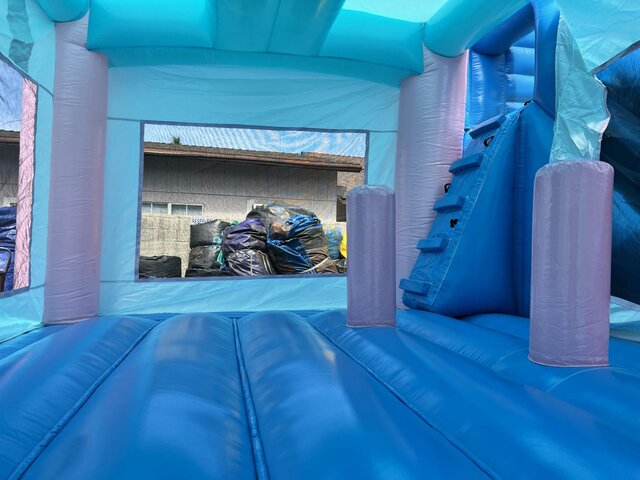 Outlets: 2 POWER OUTLETS WITHIN 50 FT OF SET UP. IF THERE IS NO ELECTRICITY 2 GAS BLOWERS ARE REQUIRED WATER HOSE NEAR SET UP( IF USING SLIDE WET)